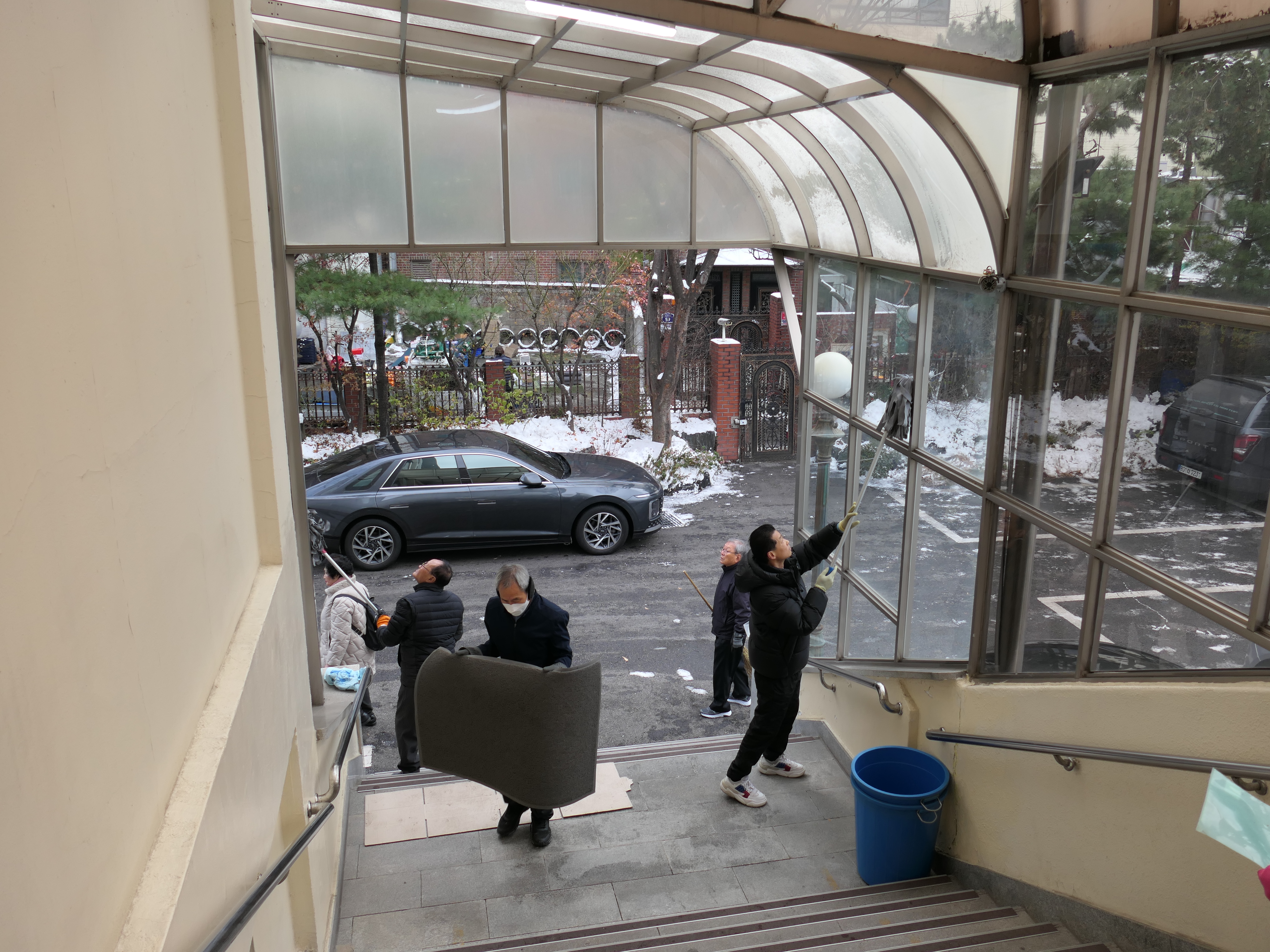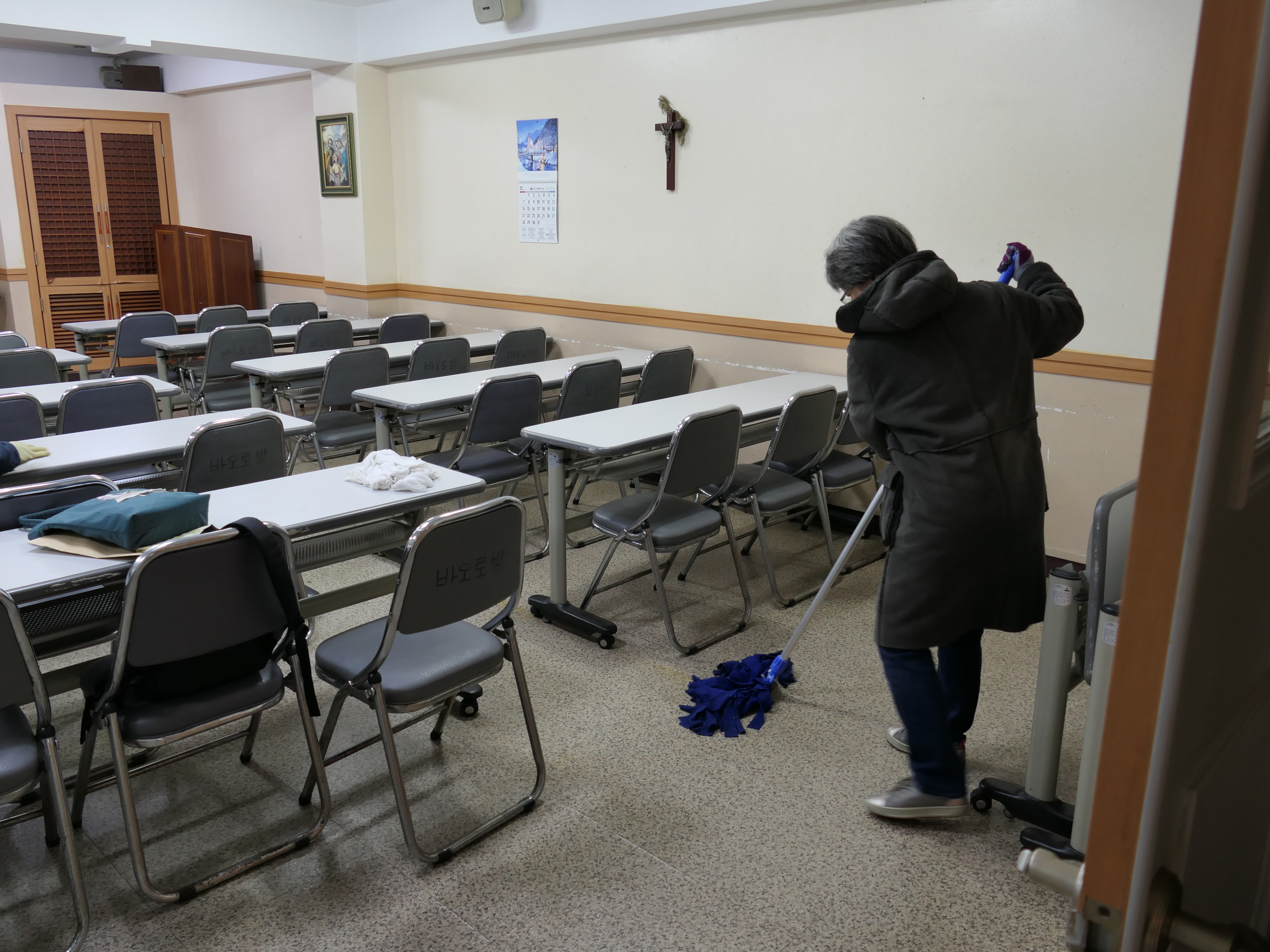 10시 성모신심미사가 끝난 뒤에 본격적인 연말과 대림시기를 쾌적하게 보내기 위한 본당 대청소를 했습니다. 구역별로 미리 배정한 장소를 신자들이 열심히 청소하는 모습입니다. 청소가 모두 끝난 뒤에는 본당 여성총구역회 측이 준비한 김치찌개 등으로 점심을 함께했습니다.