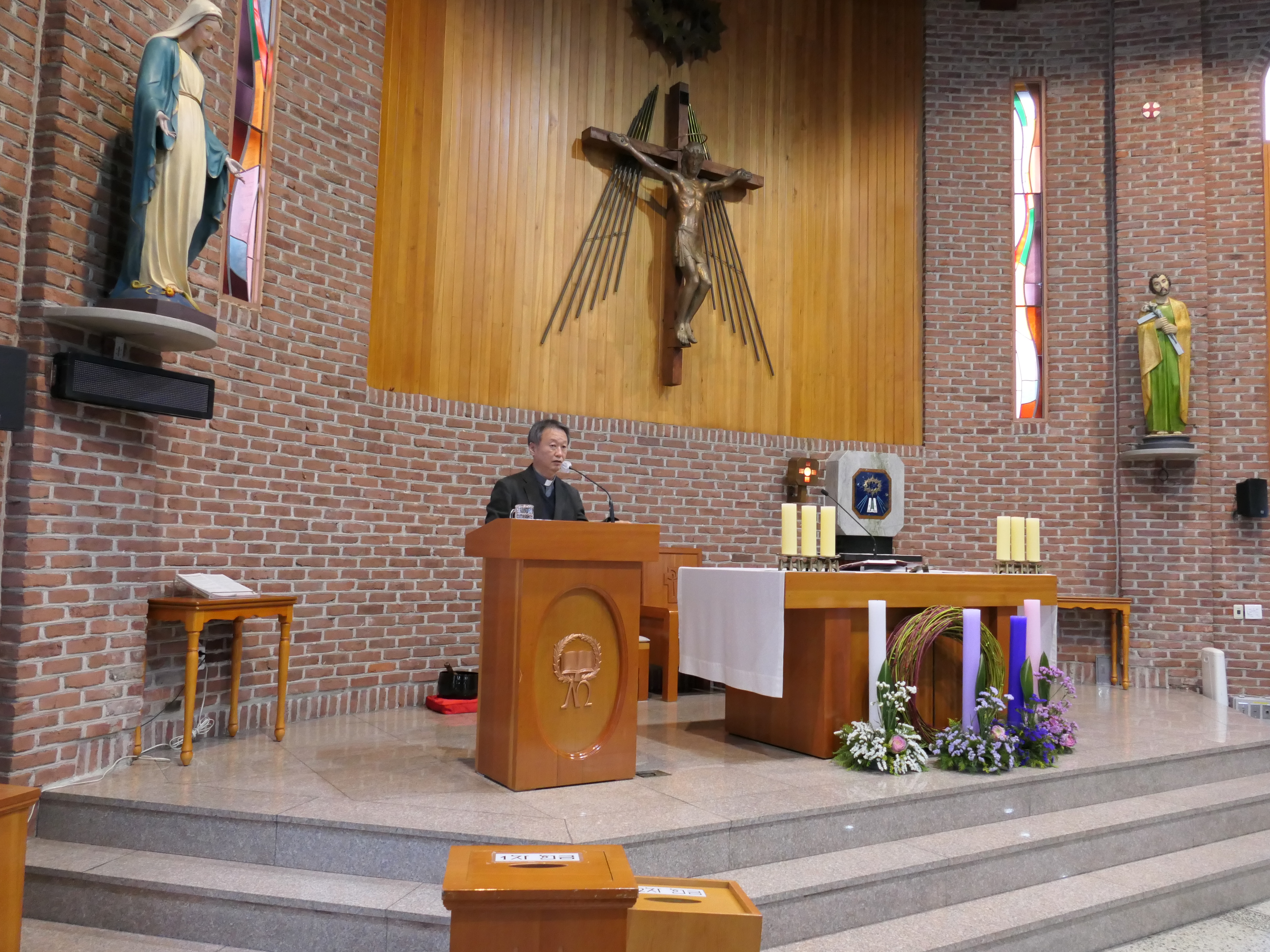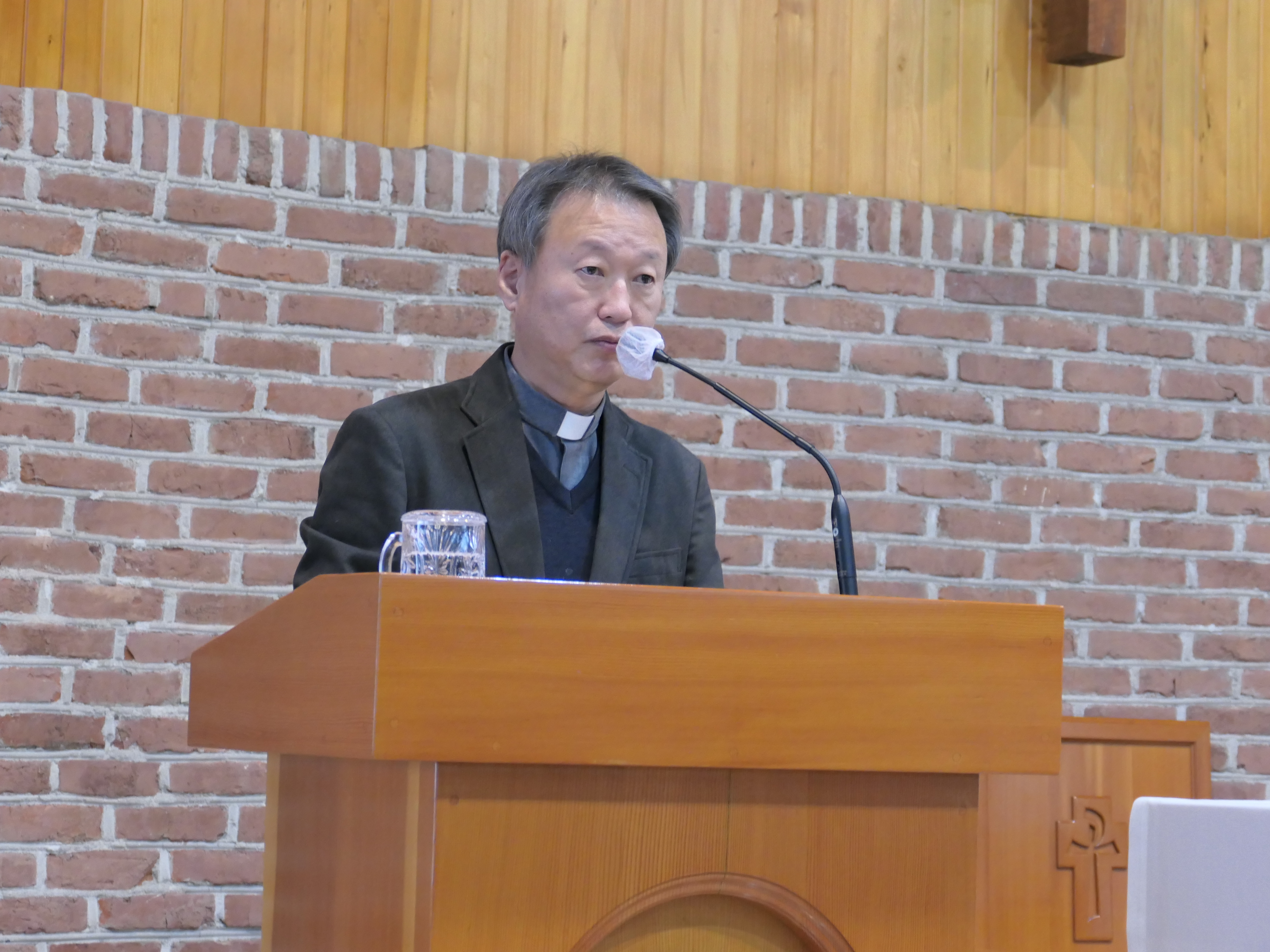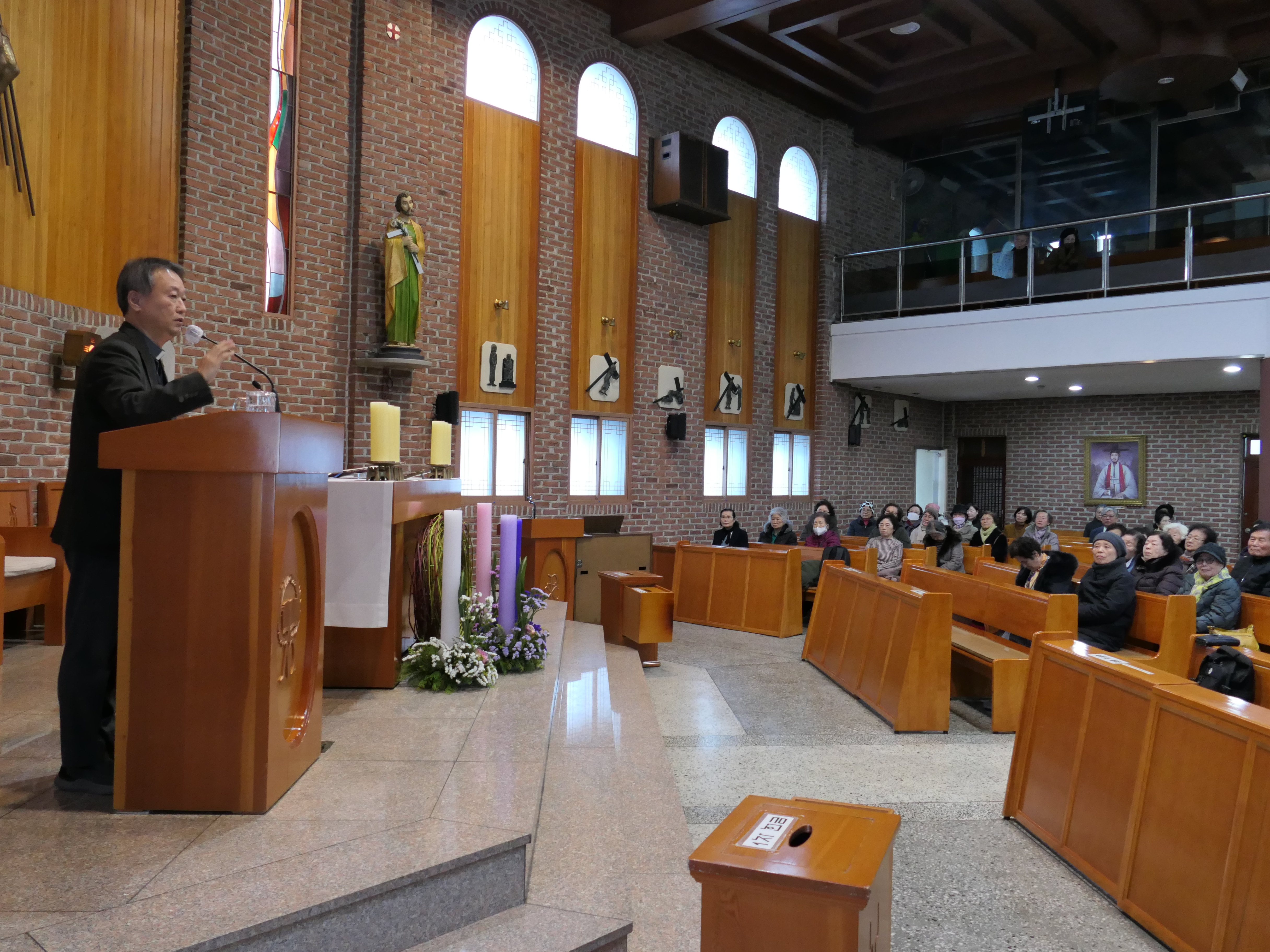 교중미사를 마치고 오후 12시 30분부터 약 1시간 30분 동안 이재정(토마스 아퀴나스) 신부님의 대림 특강 시간을 가졌습니다. 신부님은 현재 경기도 고양시 일산동구(의정부교구)에 있는 국립암센터 원목실장으로 사목하고 계십니다. 신부님은 "우리는 죽을 때까지 많이 부족한 상태로 여전히 미완성 과정 중이며, 서로의 부족함을 채워주는 삶을 살자"고 말씀하시고, "공동체가 함께 바치는 기도인 미사가 세상에서 최고의 가치임을 잊지 말자"를 강조하셨습니다. 또한 "물질적인 것에 대한 집착보다는 갓난아기를 이 세상에 보내신 하느님의 뜻과 '임마누엘'이란 의미를 다시 한번 깊이 묵상하는 대림시기을 보내자"라고도 말씀하셨습니다.